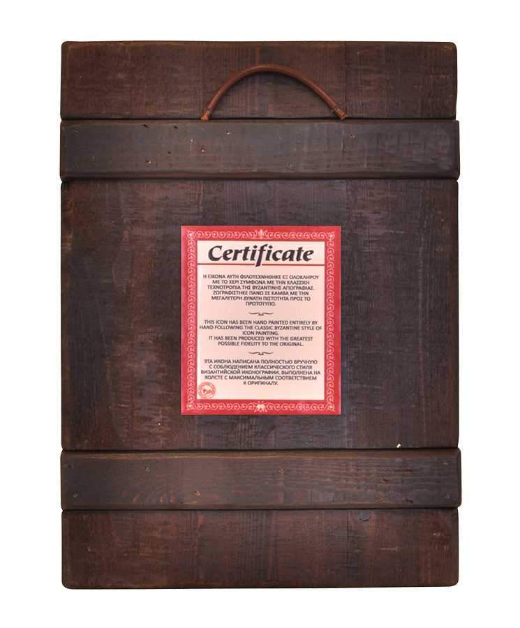 The icon is inspired from the text of Apocalypse by John the Evangelist. The icon is housed in the Apocalypse Cave at the island of Patmos.